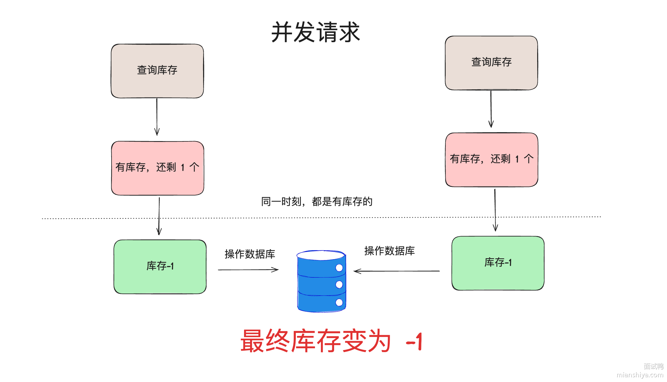 可以跟面试官提一下这个方案,跟他说清这个方案是有超卖的问题。表明你知道这个思路,也知道这个方案的缺点。