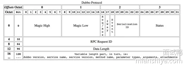 协议头放一些元数据,包括:魔法位、协议的版本、消息的类型、序列化方式、整体长度、头长度、扩展位等。