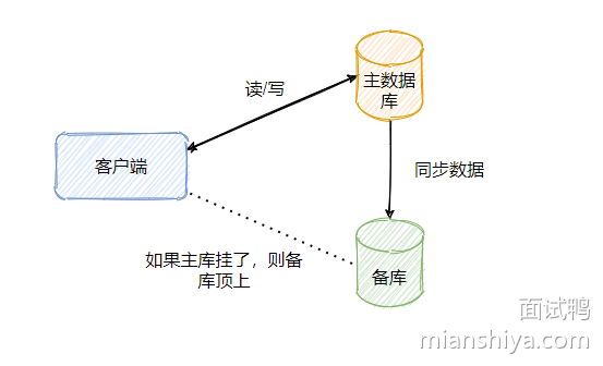 主从架构就是主机和从机。从机和备机的区别在于,它是对外提供服务的,一般而言主从就是读写分离,写请求指派到主机,读请求指派到从机